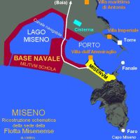 Quanto a Miseno, dopo aver attentamente confrontato le varie ricostruzioni trovate finora, sono pervenuto alla conclusione che nessuna di esse fosse sufficientemente soddisfacente, tenuto conto delle esigenze di una flotta quale la Classis Misenensis. Ho quindi realizzato una mia personale ricostruzione (immagine a lato).