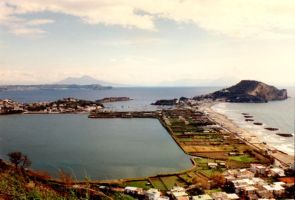 Poco dopo pervenimmo all’ingresso della base navale, sorvegliata da dei classiari, i militi della flotta [2]. Alla nostra sinistra si apriva la rada del porto di Miseno, pieno di navi, mentre a destra la riva del lago era occupata da cantieri navali. Dopo aver superato alcune costruzioni militari, giungemmo al canale che mette in comunicazione la rada con il lago di Miseno, facendo di quest'ultimo il bacino interno del complesso portuario. Lì stazionava durante l’inverno il grosso della flotta, bene al riparo, lasciando in rada solo le navi pronte a salpare per le esigenze più urgenti. Allora, dato che eravamo all'inizio della primavera, una buona metà della flotta era già passata in rada, mentre le rimanenti si trovavano ancora nel lago per effettuarvi alcune esercitazioni, allo scopo di completare l’addestramento degli equipaggi prima di andare per mare.