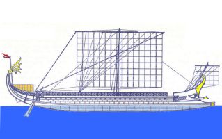 [6] Il dolone, albero di prora, era inclinato in avanti ed assolveva le funzioni del trinchetto e soprattutto del bompresso.